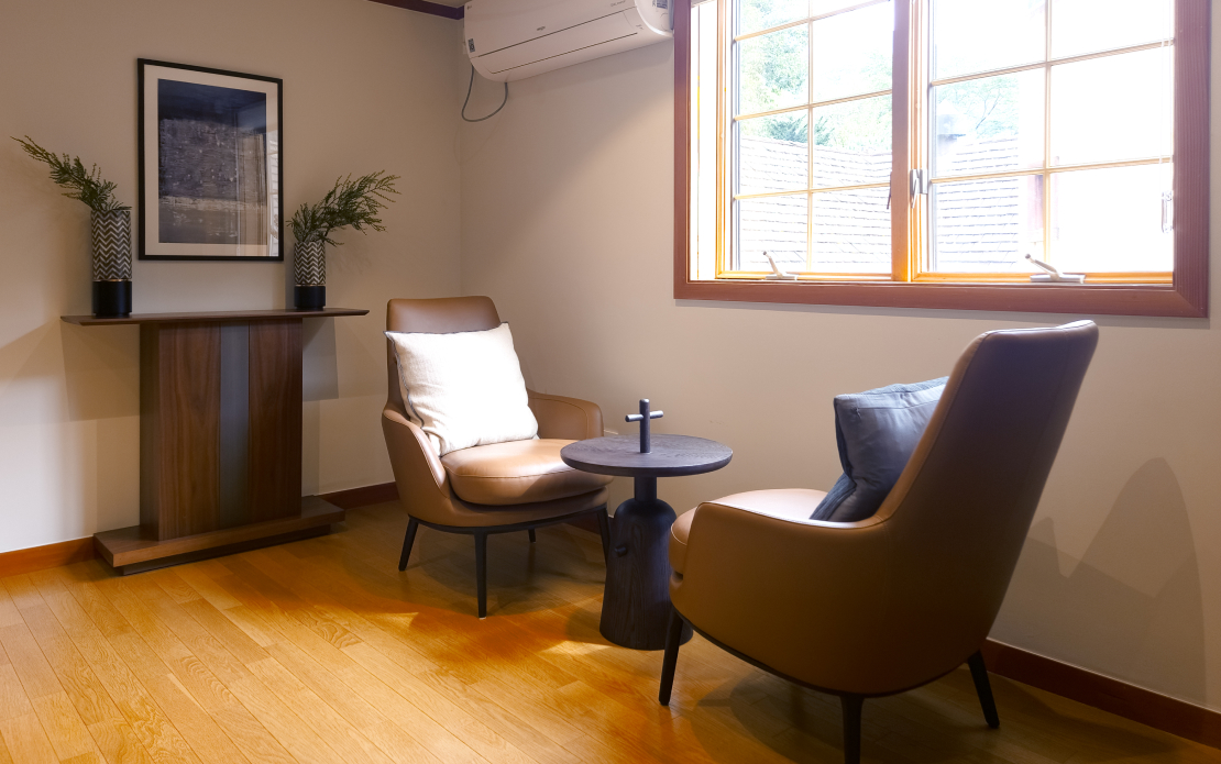 탁 트인 북한강 풍경이 펼쳐지는 창 너머 햇살이 머무는 중정(中庭)과 따뜻한 바람이 스며드는 설계는 공간 그 자체로 위로가 됩니다.