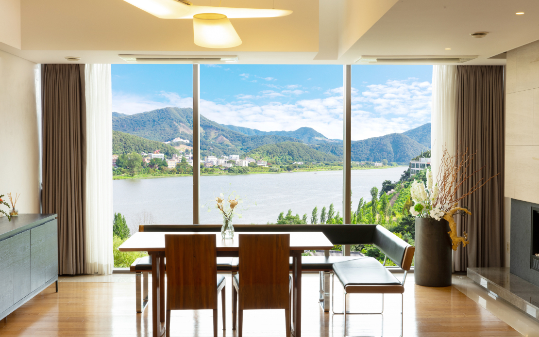 탁 트인 북한강 풍경이 펼쳐지는 창 너머 햇살이 머무는 중정(中庭)과 따뜻한 바람이 스며드는 설계는 공간 그 자체로 위로가 됩니다.